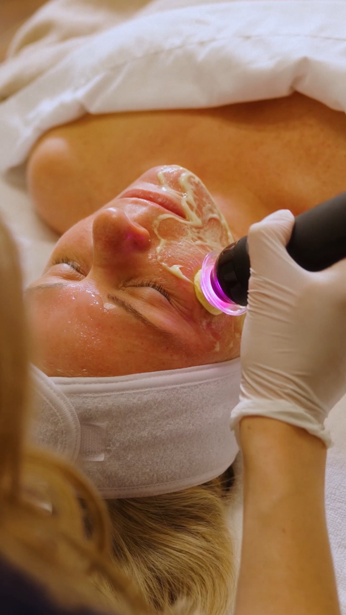Glo2Facial, a multi-step treatment begins with oxygenation and exfoliation that targets your unique skin concern. Then, we utilize ultrasound technology to deeply penetrate our targeted serum, enhancing your skin's absorption & effectiveness. Lastly, we use detoxification techniques that promote circulation & lymphatic drainage.